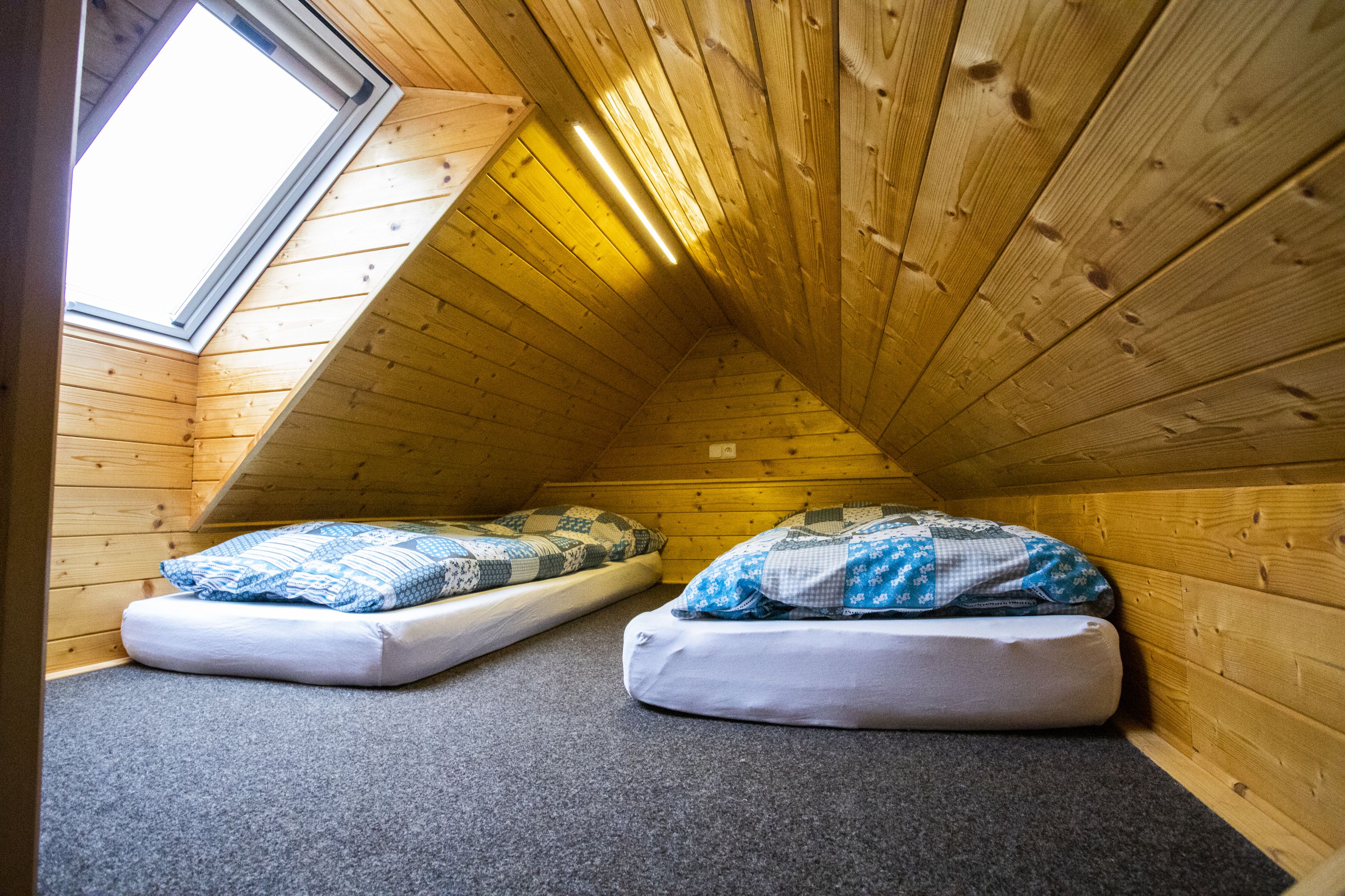 Kapacita 2-4 osoby (dvoulůžko a spaní na hambalku), vybavená kuchyňská linka a koupelna s WC. Plocha 26m2 + hambalek.